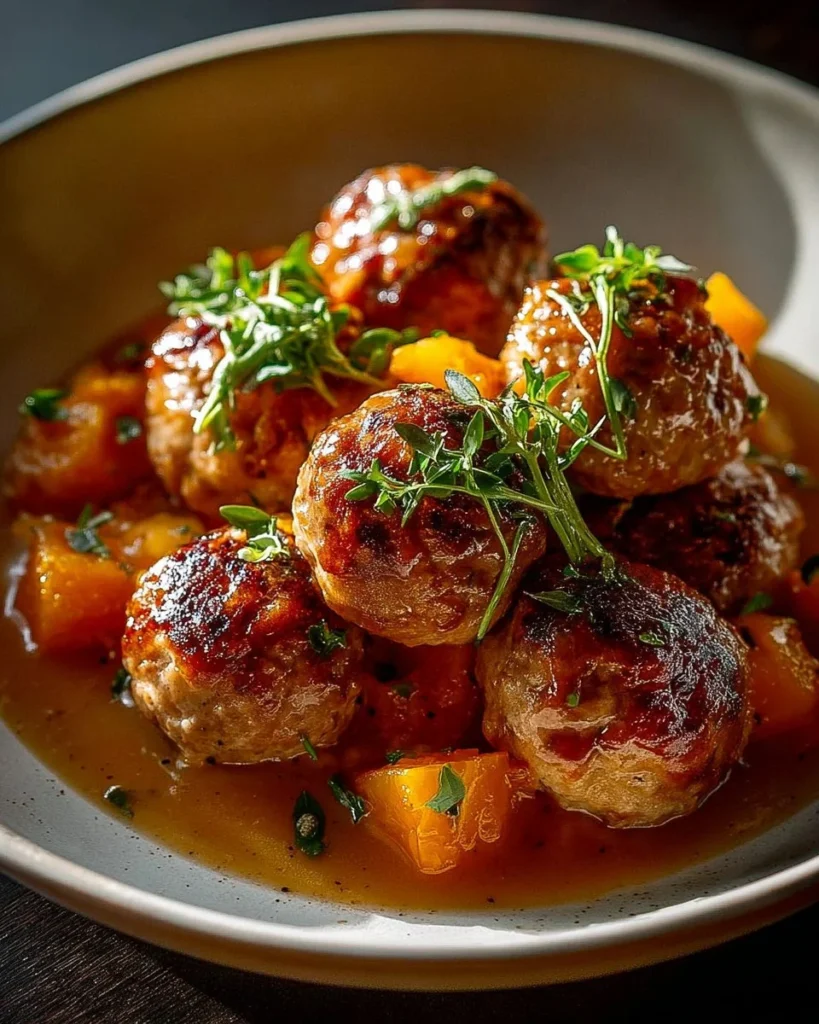 - Servez les boulettes de poulet crémeuses chaudes, accompagnées de pâtes, de riz ou de légumes sautés.