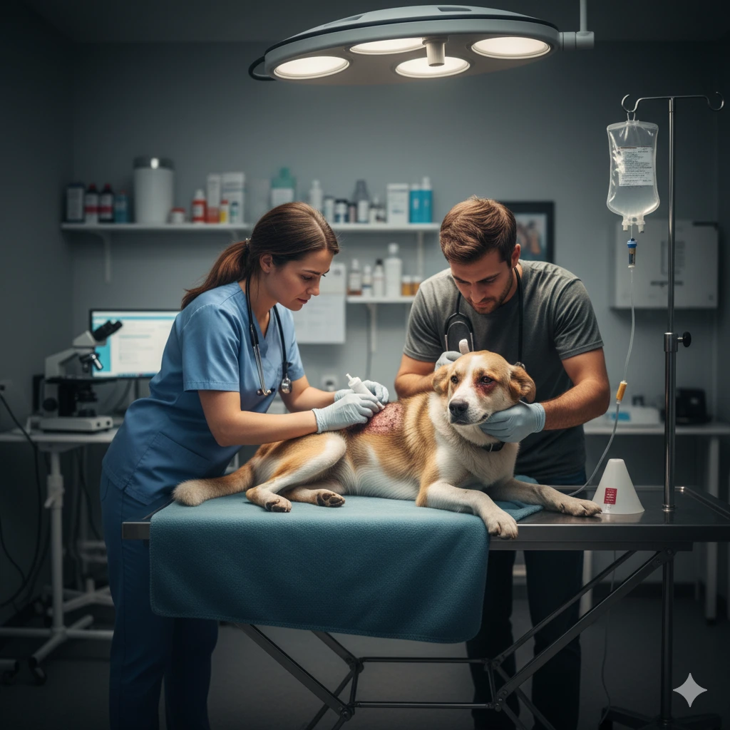 At the veterinary hospital, the medical team acted immediately. Charlie was dehydrated, weak, and in shock. They cleaned his wounds, administered antibiotics, and began IV fluids to stabilize him. Some of his burns were deep, indicating that the healing process would be long and complex.