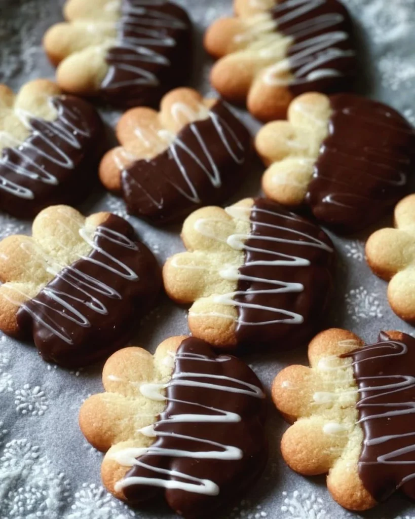 - Laisser refroidir, puis tremper l’extrémité de chaque biscuit dans du chocolat fondu si désiré.