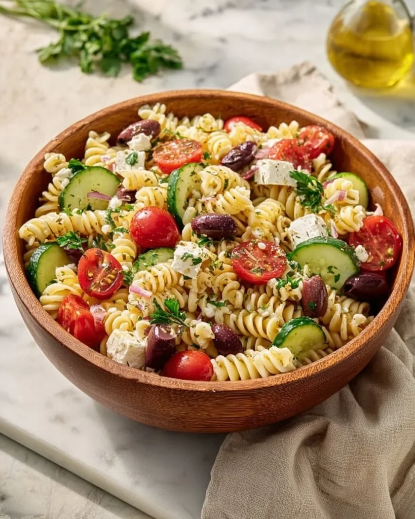 COMMENT SERVIR UNE SALADE DE PÂTES À LA GRECQUE