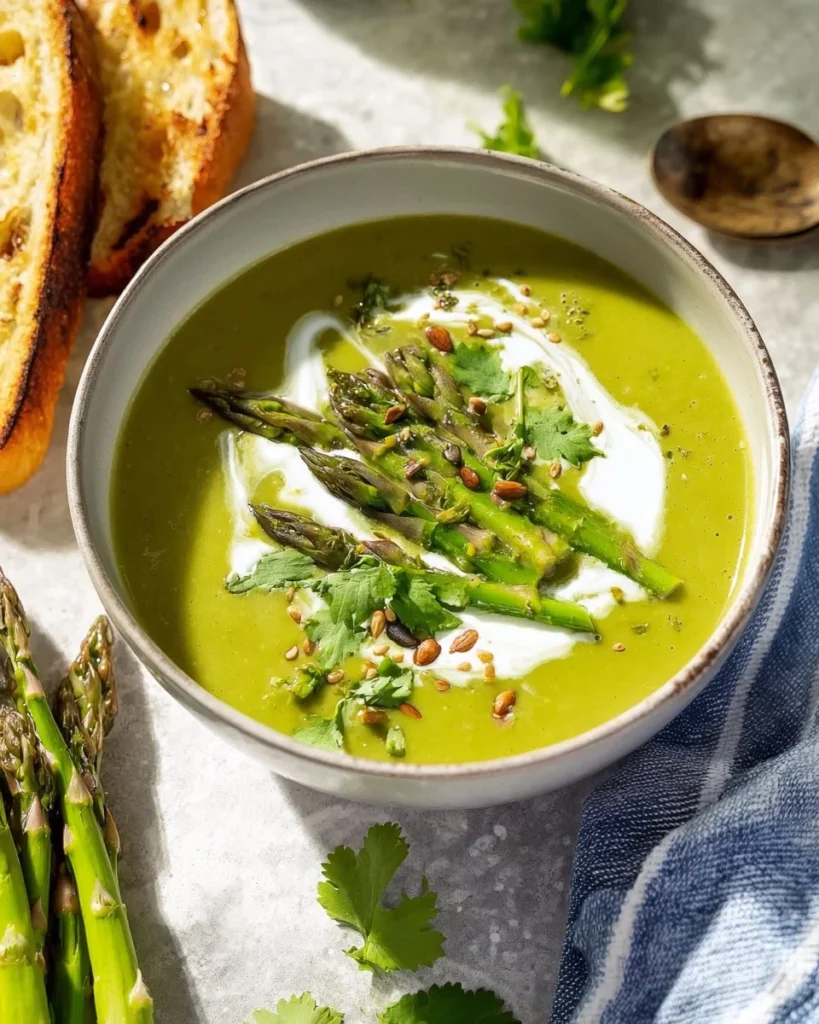 Vous allez découvrir une soupe douce, verte et facile à faire. Cette recette met en valeur le goût frais des asperges vertes. Elle est rapide et peut plaire à toute la famille.