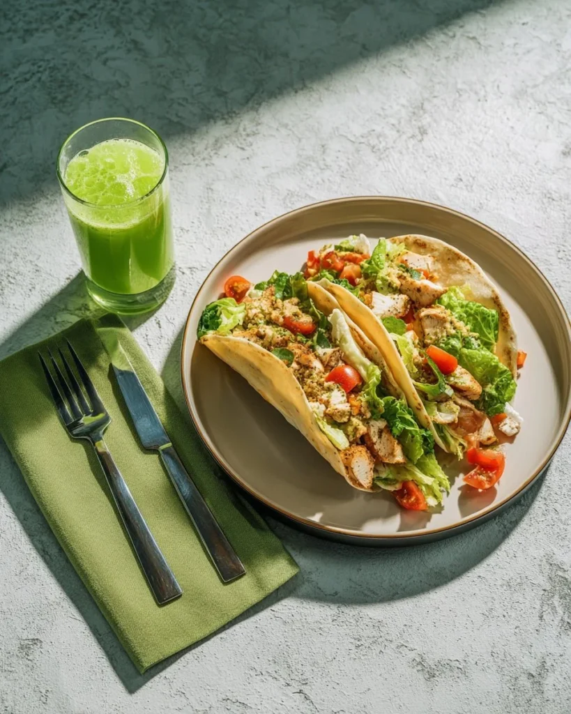 Pour un service sain, gardez les portions contrôlées : une tortilla par personne plus une belle portion de salade. Servez avec des légumes cuits ou crus pour ajouter des fibres et des vitamines. Une bonne idée est d’accompagner les wraps d’asperges ou de légumes rôtis pour un repas complet et low calorie. Vous pouvez servir une portion d’asperges rôties pour équilibrer l’assiette, comme dans cette recette d’asperges vertes et pommes de terre rôties. Pour ceux qui surveillent leur sucre, évitez les sauces sucrées et utilisez plus de yaourt grec pour garder la garniture faible en sucre.